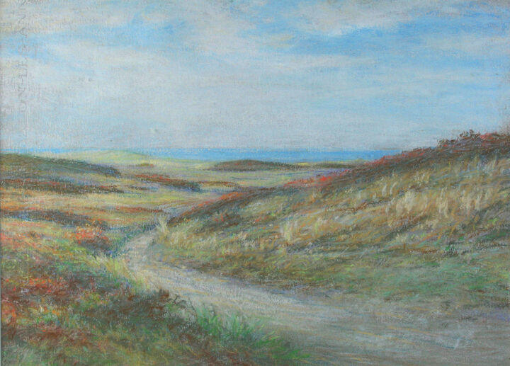 Annie Folger painted during the 1920s. She exhibited at the few of the island’s early galleries, including at the Easy Street Gallery from 1924 to 1943, and at the Candle House Studio on the corner of Commercial Wharf and Washington Street. She was a charter member of the Art Students League, which accepted female students at a time when many universities did not. Elizabeth Rebecca Coffin was a close friend.