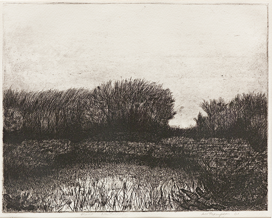 Thompson worked on Nantucket starting in the 1950’s, and he received grants to carry on his art career from both the Massachusetts and New York state arts councils. He was the proprietor of Nantucket Printmaking from 1975–78. Three of his etchings are preserved in the AAN Permanent Collection. Tony was a Co-founding Educator for the Nantucket Island School of Design and the Arts in 1979, instructing summers there until 1991. He exhibited on Nantucket at the Main Street Gallery, AAN, and more recently at Gráficas.