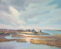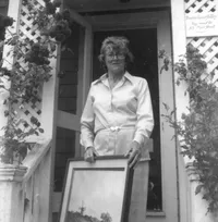 On Nantucket she turned to a second career in art, painting landscapes in acrylic that spanned two decades, much of that under the tutelage of Philip Burnham Hicken from his studio on Pine Street. She was a member of the Artists Association of Nantucket from 1970 to 1988, including five solo exhibitions at the AAN’s The Little Gallery, the last in 1987.