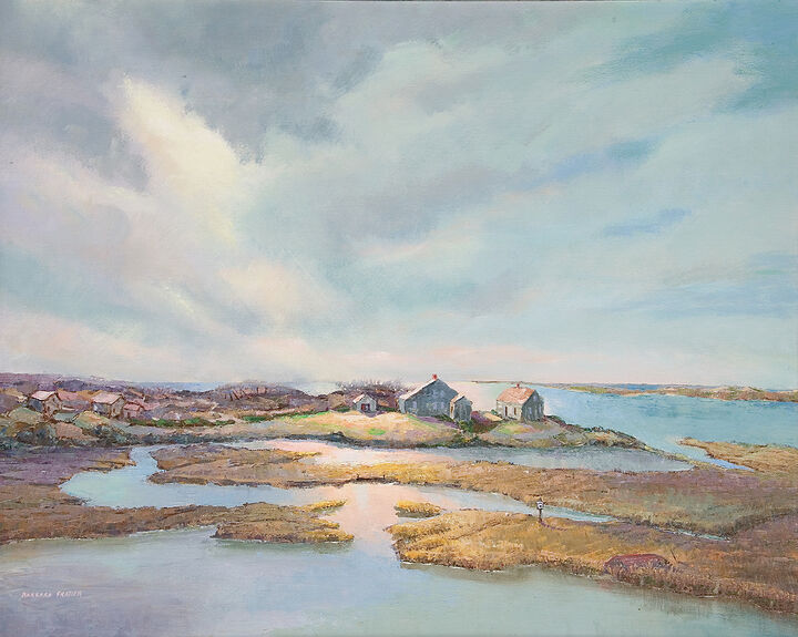 Since her last gallery exhibition on island in 1979, visionary landscapes have become the trademark of Nantucket artist Barbara Frazier. Now the Little Gallery on Lower Main Street, Straight Wharf, will host an important exhibition of her recent acrylic paintings in tandem with Canadian painter Brock Davis.