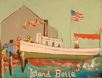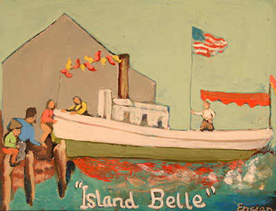 Elizabeth Ensign wrote an art-news column for the “Inquirer and Mirror”, and painted Americana canvases of such subjects as the American Revolution and Nantucket history. She studied sculpture in New York and on island worked with Niki Carpenko. At the beginning of the ‘80’s, Ensign shared a gallery with Jo Sibley called the Ensign-Sibley Gallery. She kept a studio on Eel Point Road. She flourished as an artist from 1970-1990.