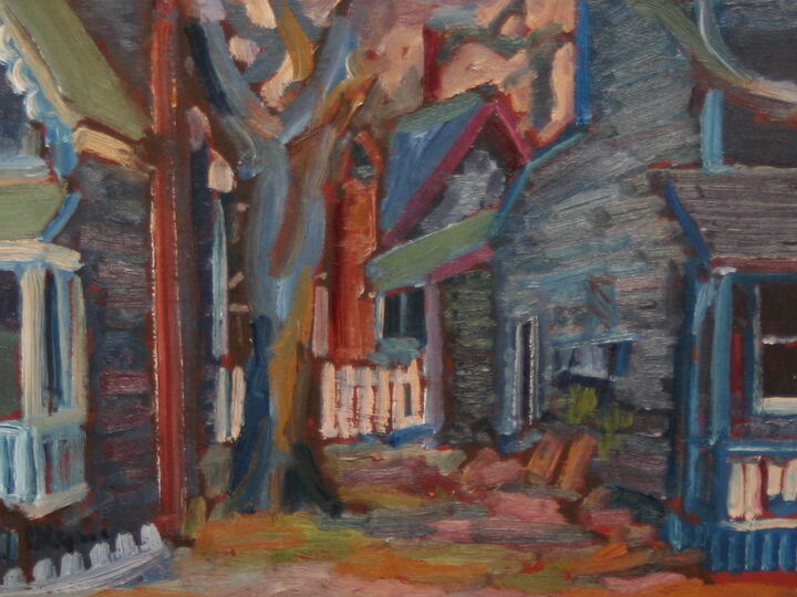 He joined the AAN as a printmaker but now works most often in watercolors and oils. He teaches several painting workshops for the AAN. Lazarus has exhibited artwork at the (X) Gallery, the Old Spouter Gallery and the South Wharf Gallery and Four Winds Craft Guild.