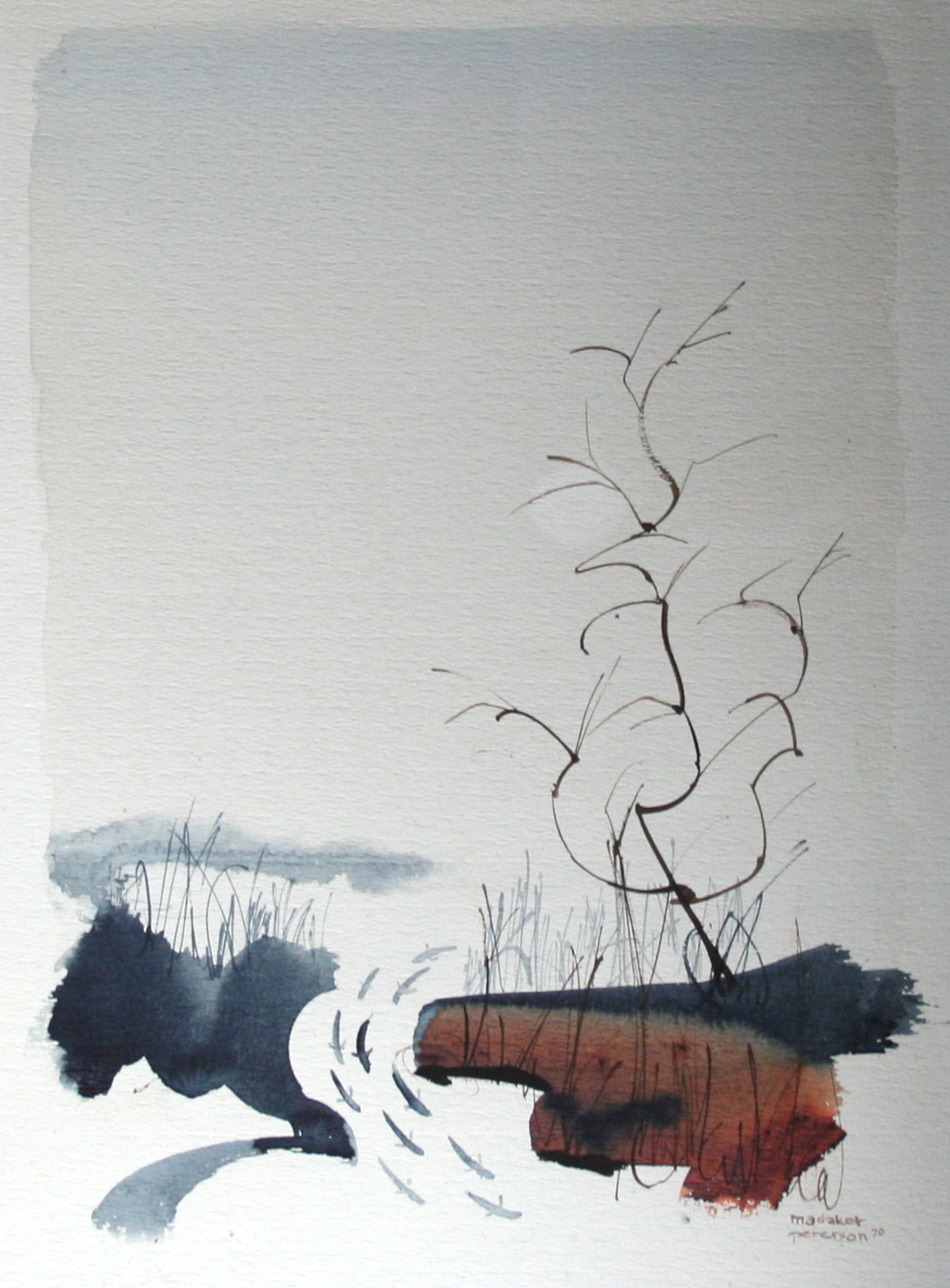 “We came here for a visit. It was in March, and it was cold in Squam. We came here and we never went back.” ” Dick and his wife Sabra and two children live on the Polpis-Quidnet road, and were on island year round until the children went back to Michigan to hieh school. “We sent the kids away to school and we went with them,” he said. “But this is the last year we’ll do this. We sell the house in Michigan this spring.” His paintings became more oriental, he said, the longer he stayed on Nantucket. “You view things so differently here. It’s all in the attitude toward the subject matter—the approach.” He often feels in painting that he becomes a vehicle and the work progresses by itself. In the meantime he reads, (the Mustard Seed Garden, parts of which were written in 1679), studies and paints. “