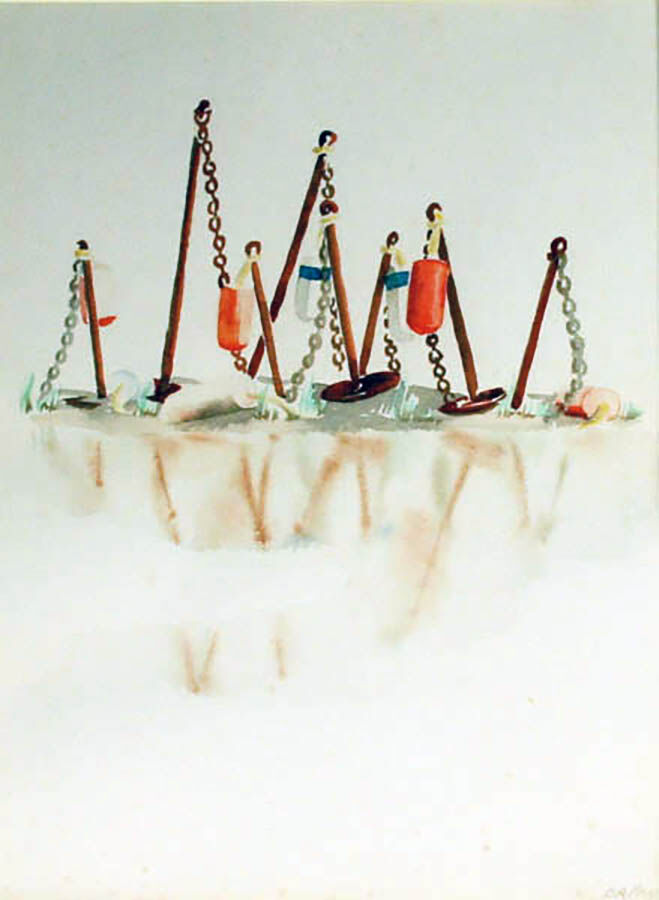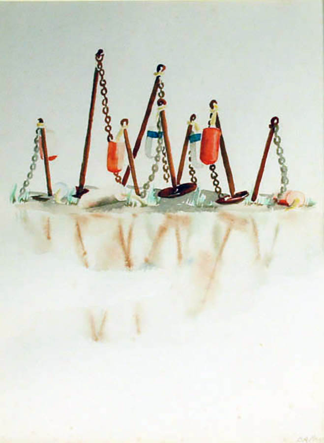 A native New Yorker, Doris studied at the Art Students League, Cooper Union, and with Arthur Dow at Columbia University. She developed a successful career designing theatrical scenery and costumes in New York, Newport, and later for the Straight Wharf Theater on Nantucket. Richard spent the summers of his childhood in ’Sconset. A graduate of Hamilton College, he served for ten years as American consul in posts in Budapest, England, Havana, and Canada. A self taught painter, he also was a talented writer who contributed to the Saturday Evening Post, Yankee Magazine, and Art News.