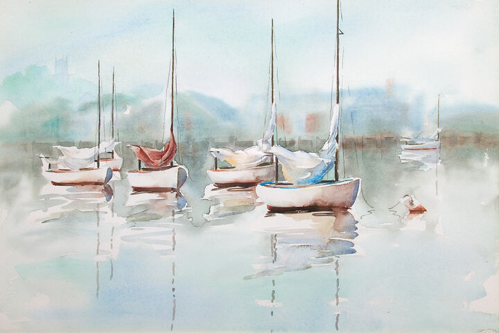 Wharfhead Studio consisted of living quarters and an exhibition space at dock level, out of which the couple operated for an eighteen-year span. Doris’s work was praised by a reviewer as “calm, limpid, but crisply executed with an economy of line.”