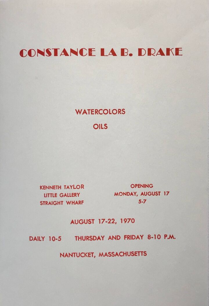“Constance Drake The Little Gallery Invitation, 1970” - offset printing