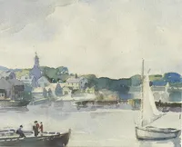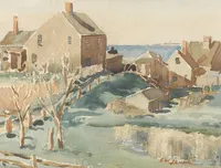 Jenney was an architect who retired to paint on Nantucket. He was known for his paintings of houses and a series of photo lithographs depicting wharf scenes and whaling figures. Jenney lived on Vestal Street.