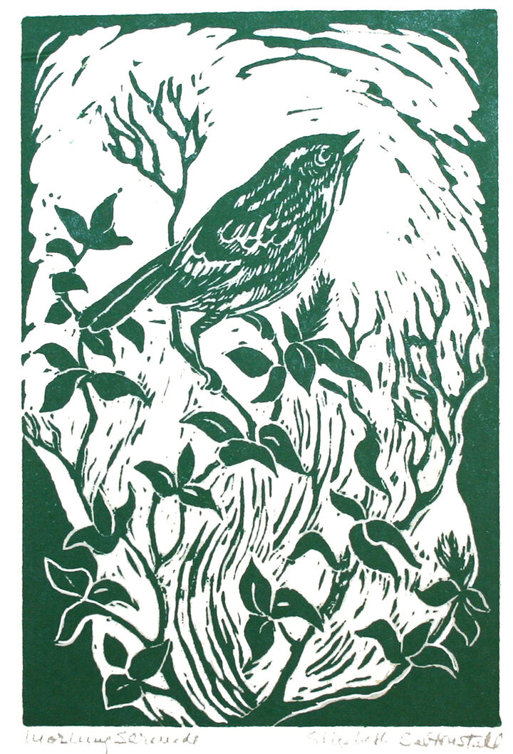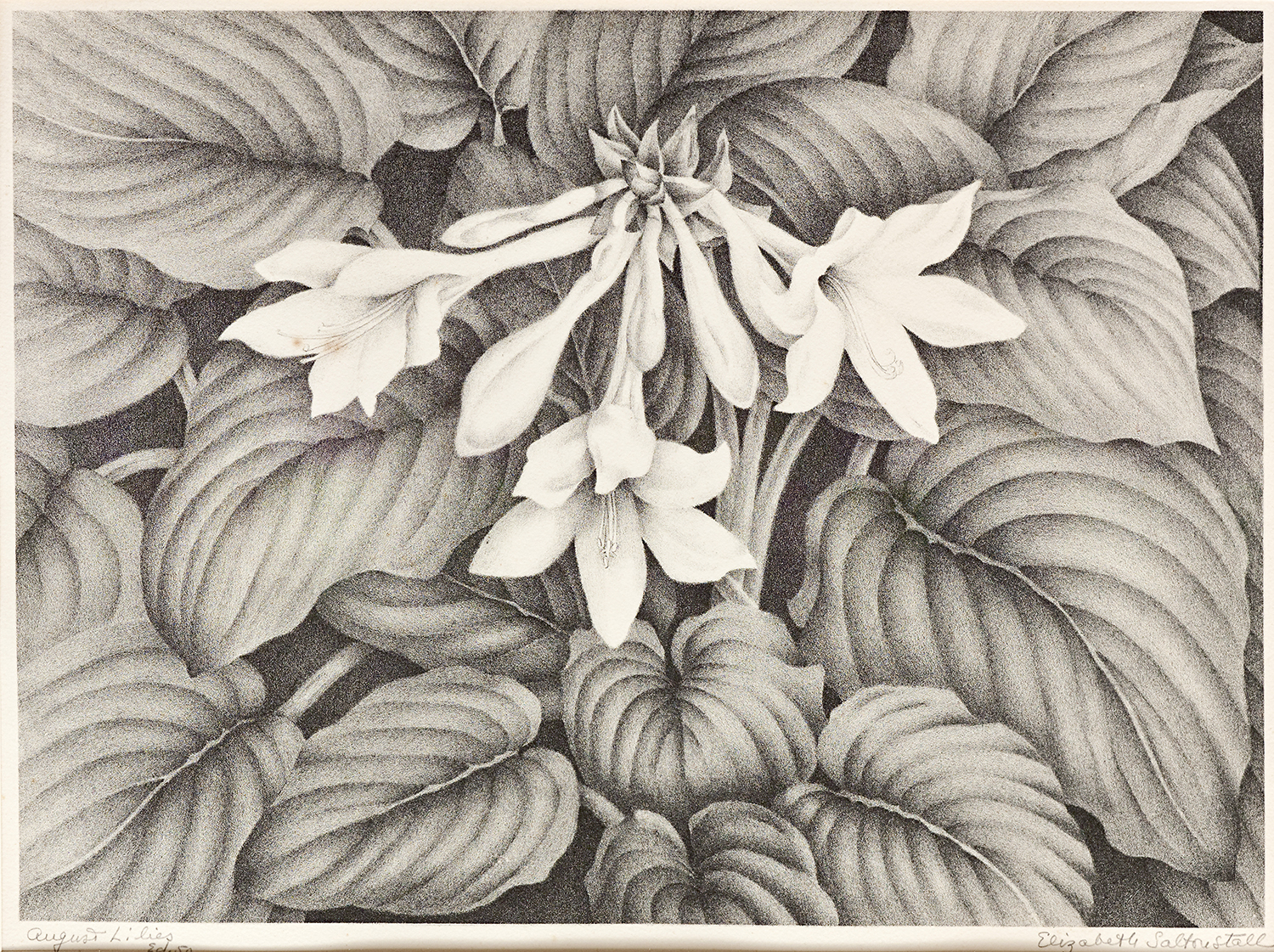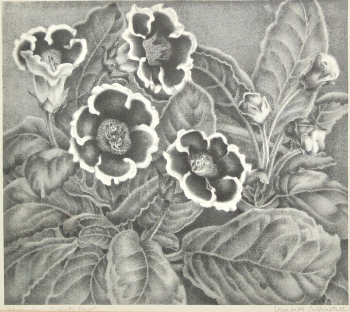 Now recognized as a master of stone lithography, an exacting medium that suited her exquisite drawings of the natural world, her lithography stones were printed by master printmaker George C. Miller. She exhibited at the Audubon Society of Students, Brooklyn Museum, Carnegie Institute International, National Academy of Design, and National Association of Women Artists. On Nantucket she exhibited at the Easy Street Gallery, the Candle House, the James Hunt Barker Galleries, the Main Street Gallery, and the Kenneth Taylor Galleries.
