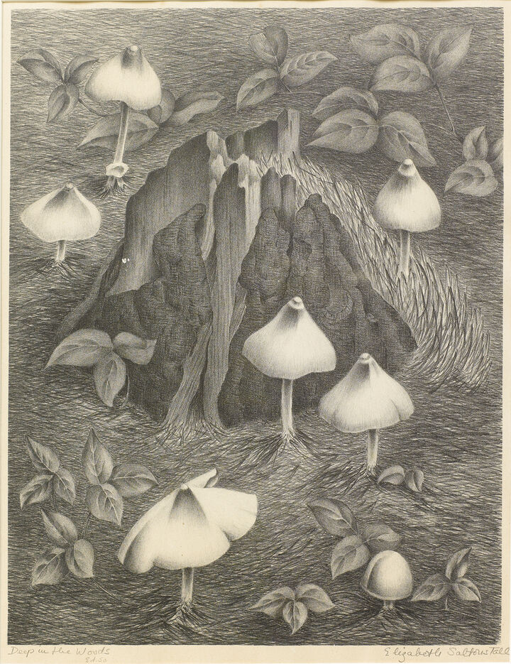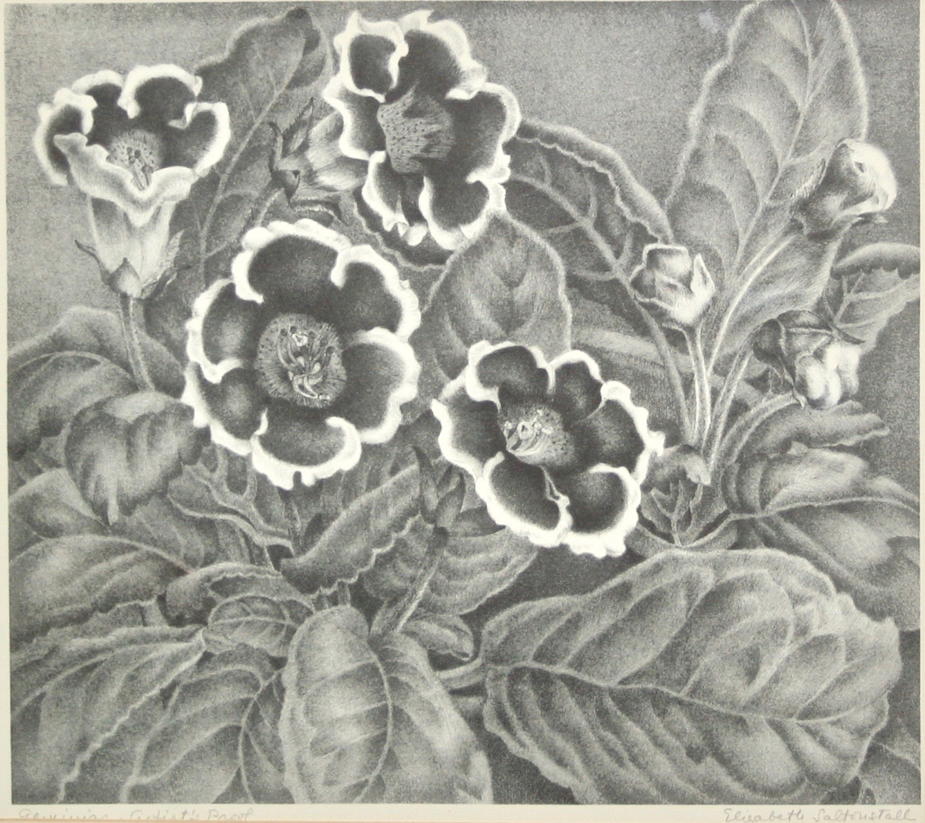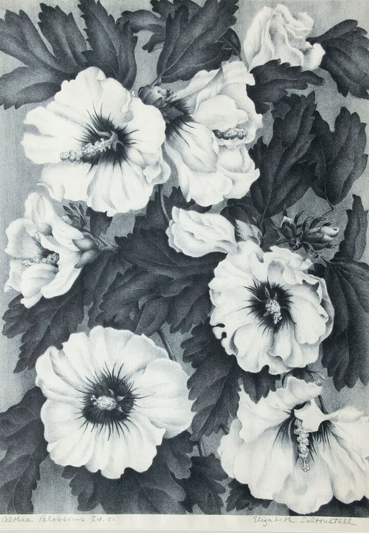 Born at the beginning of the twentieth century, Saltonstall resided most of her life in Chestnut Hill and Nantucket. Daughter of a onetime Middlesex County district attorney, her family tree stretched back to Sir Richard Saltonstall, who landed in the New World in 1630. She attended the Winsor School, the art school of the Museum of Fine Arts, Boston, where she studied fine and graphic arts with a focus on the natural world for inspiration. She became a major supporter of the Boston Society of Independent Artists, and studied briefly in Paris. Although she painted in oils, acrylics, and watercolors, stone lithography became her principle medium.