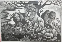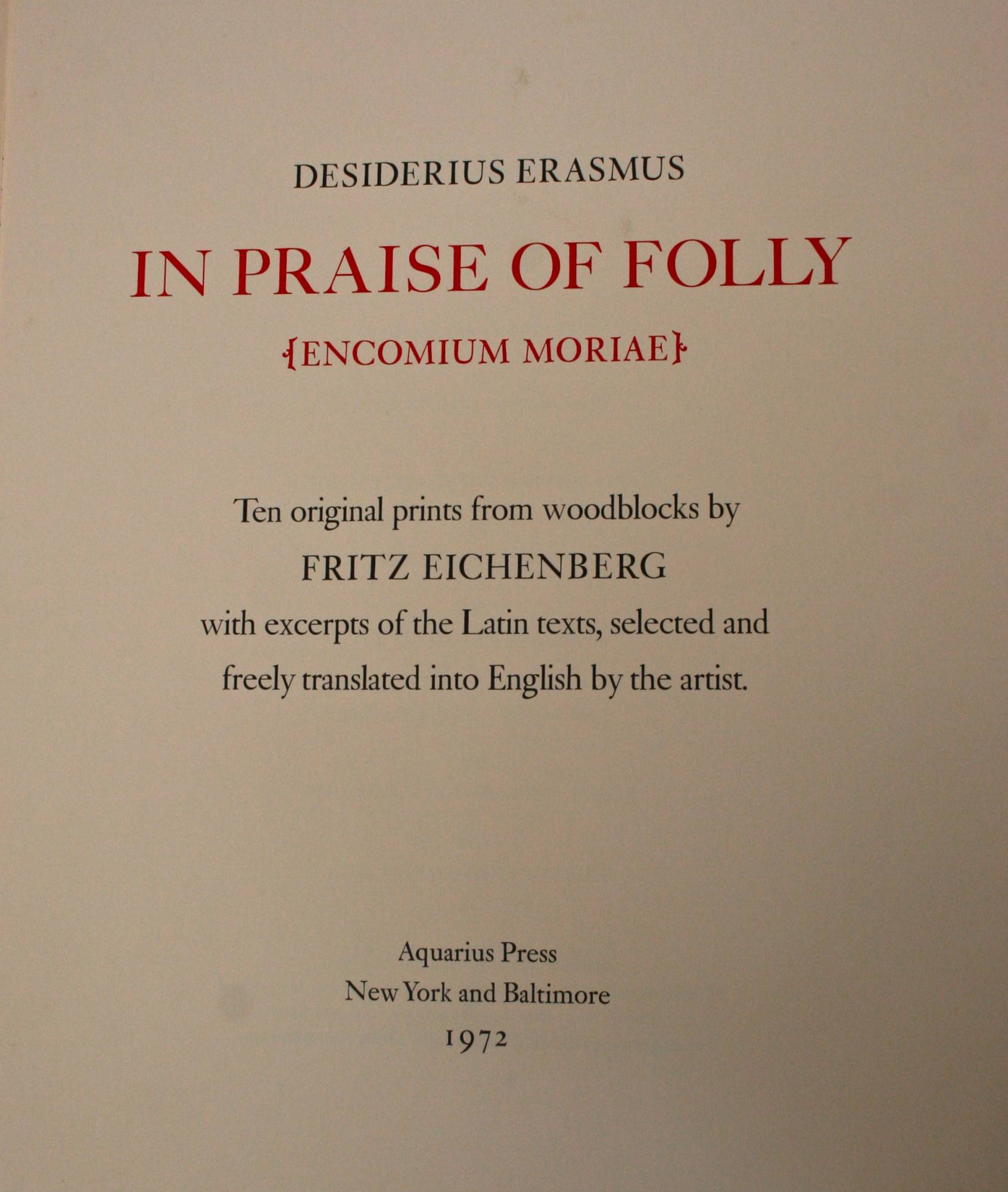 Reggie Levine donated two portfolios of Eichenberg’s prints from the Main Street Gallery Collection, Fables with a Twist and Desiderius Erasmus, In Praise of Folly, in 2013.