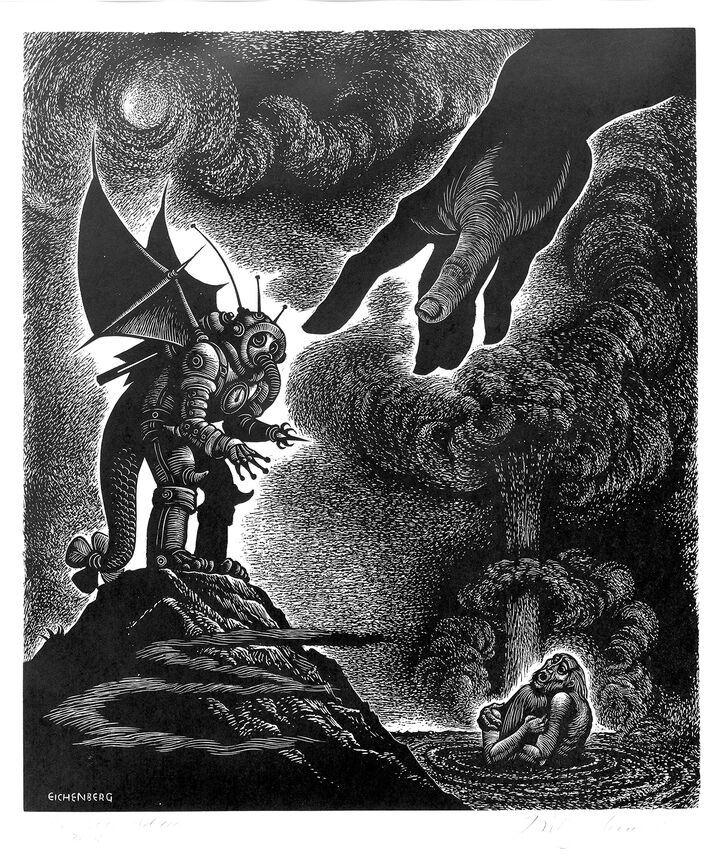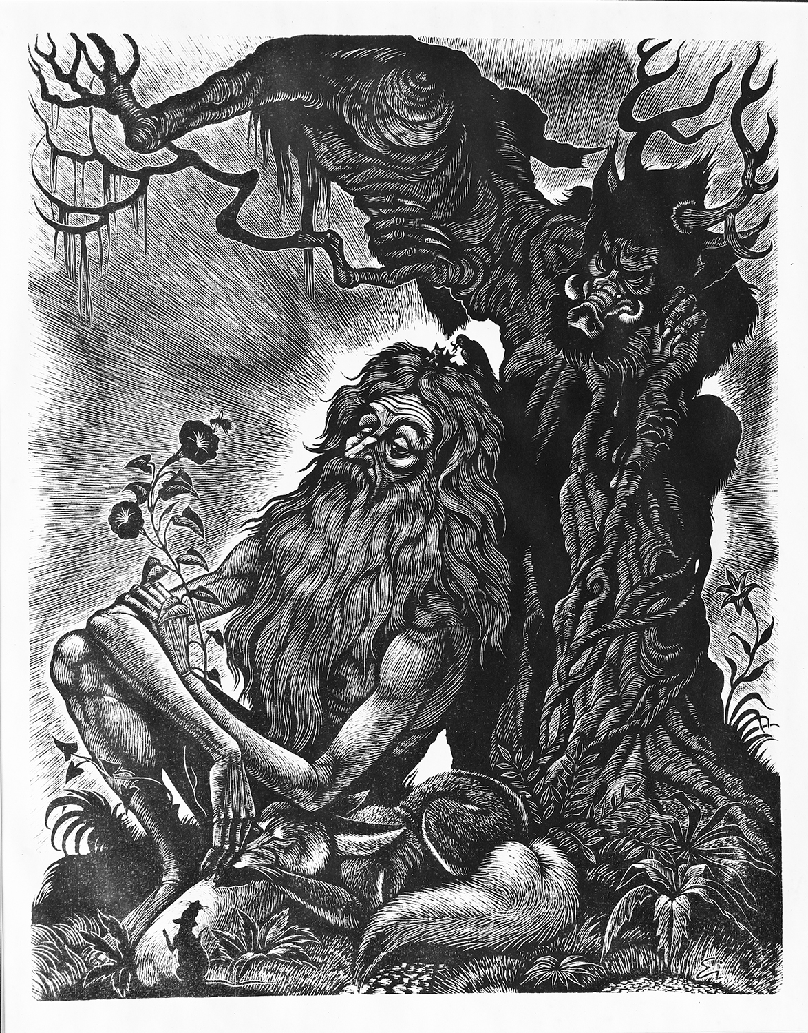 He found that book illustration was a suitable medium for his personality, as he found literature to be a means for personal escape. Eichenberg brought his own intense identification with the author and the characters to his illustrations, thus his images opened a new world for the reader’s understanding of a text. Already established as successful and prosperous commercial illustrator of literature, in 1949 when he met the Christian social justice activist Dorothy Day, he began a parallel career as an illustrator of religious images for Day’s newspaper The Catholic Worker.