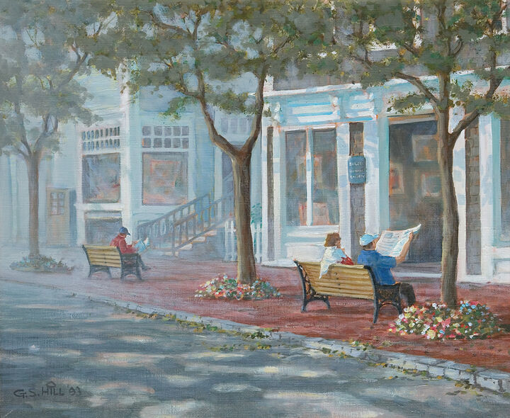 Maui beckoned in 1974, resulting in a turning point in his career when he caught the attention of Nantucket gallery owners Dot and Ed Hyde. He arrived on island in 1979 to take over their gallery and renamed it the G.S. Hill Gallery, and proceeded to open Straight Wharf Gallery and Gifts in 1981, and Hill’s of Nantucket in 1983 and Nantucket Pearl Company in 2008. Today, all three galleries are combined into one and continue to exhibit his original oil, watercolor, and pencil work along with custom-designed American-made gifts and pearl jewelry designed by Pam Freitus.