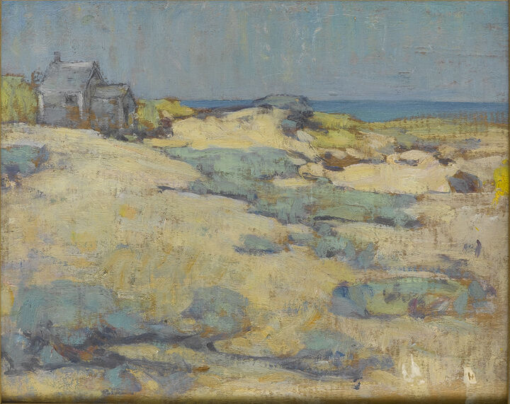 Harriet Lord exhibited at the Red Anchor Studio on Washington Street for over three decades, down the street from the Candle House Studio at the head of Commercial Wharf and around the corner from the cluster of cottages used by the waterfront artists. She advertised her studio as “Open to Visitors/ Sunday Afternoons in July-August.” Lord also showed regularly at the Easy Street Gallery, and took classes from Frank Swift Chase. She later included work in the Sidewalk Art Show and belonged to the Artists Association of Nantucket. An accomplished painter open to experiment with mediums and styles, she focused on landscapes, small portraits, and still lifes. A reviewer from the New York World Telegram wrote in 1931: “Harriet Lord…deals in a colorful manner with autumn on the moors, placing a special emphasis on the deep reds of the season.”