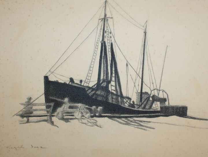 Hazel Beauregard Ives was a graduate of the Museum School of Art at the Museum of Fine Arts in Boston. She was a cartographer during W.W. II, and in the ’50s was a portraitist, and her paintings of authors, politicians, and businessmen appeared on the cover of the Atlantic Monthly.