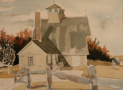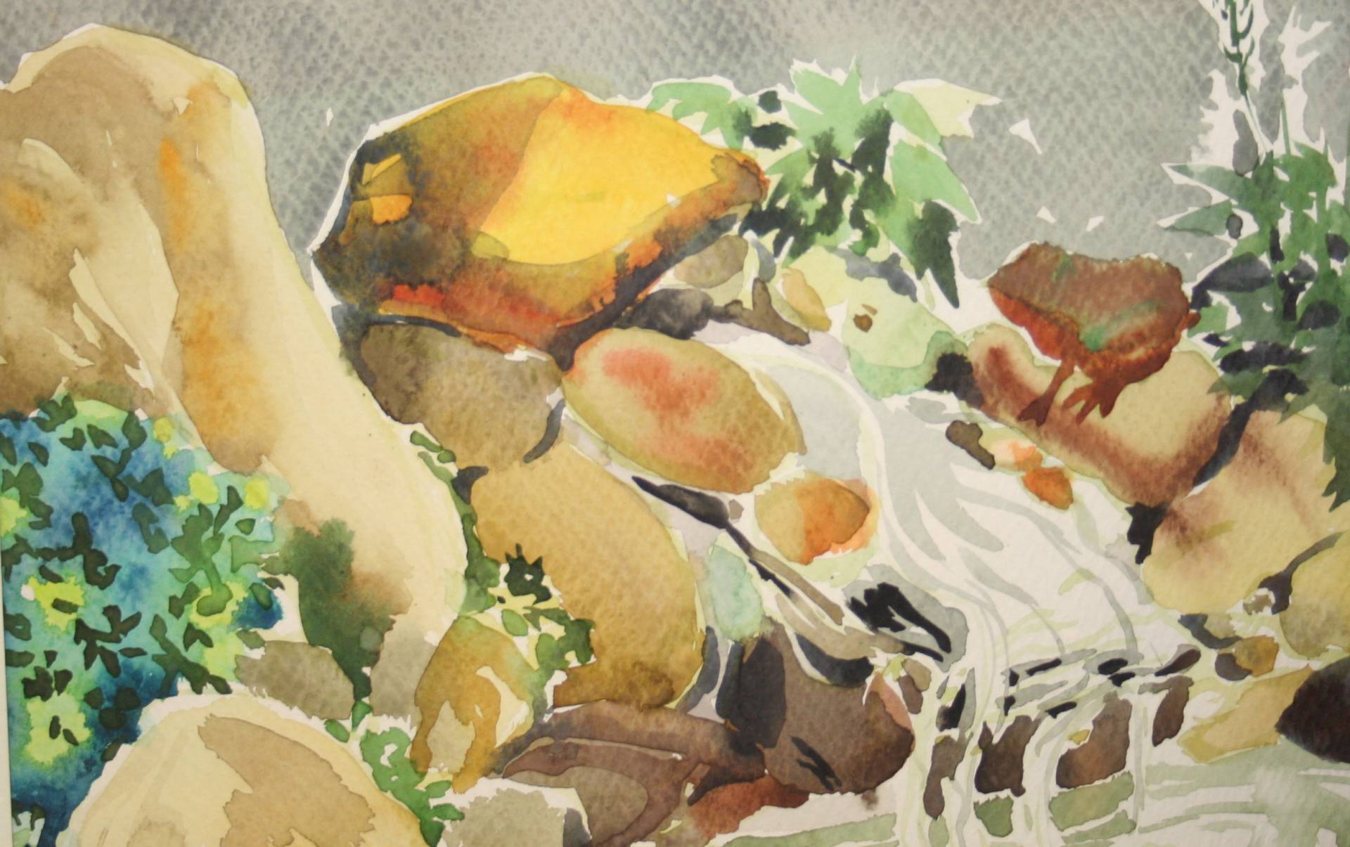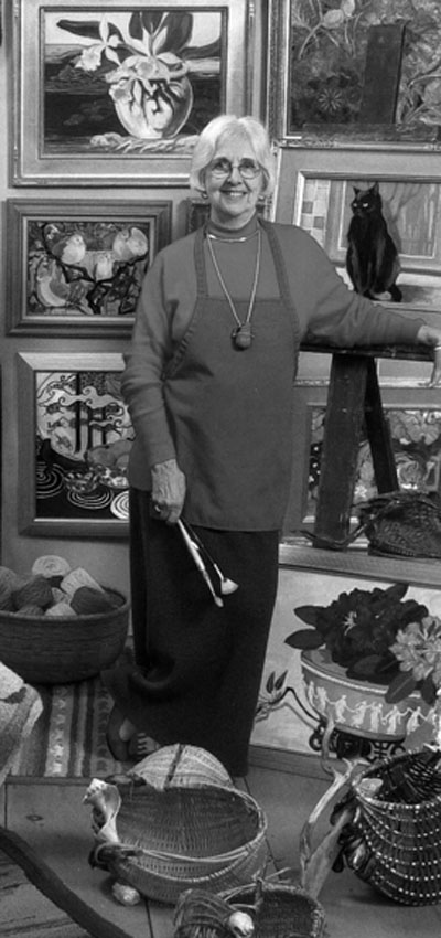 Educated at the Art Center in San Francisco and William Patterson College in New Jersey. She used to paint watercolors “en plein air” and then worked out of her studio at 3 Chestnut Street with her husband, fiber artisan Jerry Carl. She met Jerry in art school and married in 1948. Jeannette also sculpted clay and wove baskets and shorebirds out of rattan reed. One of the few AAN painters who regularly used the alkyd medium.