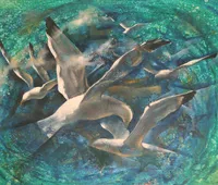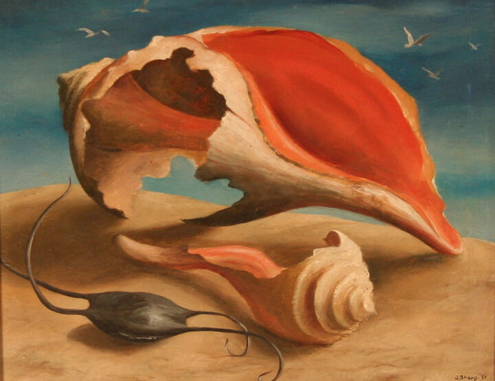 While he was a student at the Art Student’s League in New York, Sharp met fellow artist Paul Crosthwaite, and the two became lifelong companions. Around 1935, they started spending summers in New Hope, moving there permanently shortly thereafter. Their apartment and studio was above the Solebury National Bank, at the foot of the New Hope-Lambertville Bridge. The building was home to many of the New Hope artists, including Charles Ramsey and Henry Snell. John and Paul summered on Nantucket and painted here.
