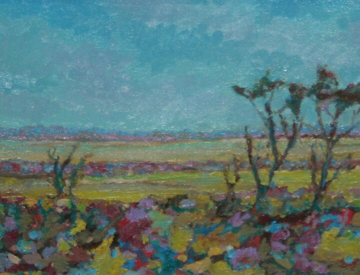 At first glance, Vienneau’s prints appear to be made by a different hand than that which created these landscape paintings. The prints are black and white intaglios, and the subject of these prints deal with Eskimo and North American Indian culture and mythology. In 1977, Vienneau received a B.F.A. in painting from Southeastern Massachusetts University, and in 1981, he received a M.F.A. in printmaking from Southern IIlinios University at Carbondale. His prints and paintings have won awards in both national and international competitions. In 1983, he was selected to take part in an Exhibition of nineteen American Artists, which toured South American galleries and museums. He has been a member of the Artists Association of Nantucket since 1975, and also exhibits his work at the Main Street Gallery. He was a member of the Executive Committee of the AAN from 1982-1984.