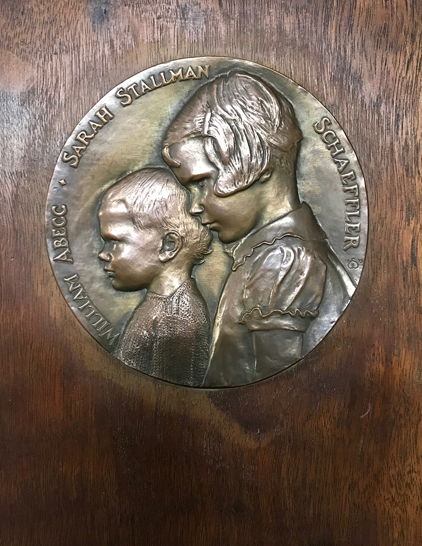The bronze memorial plaque commemorating Will Gardner in the Atheneum garden was designed and cast by her in 1965.