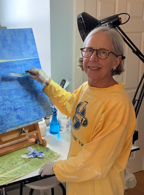 Penny Scheerer is a retired Nantucket attorney who has studied watercolor and mixed media technique with Jeanne Dobie, NWS, AWS; Katie Trinkle Legge; and numerous other AAN instructors. She won the C. Robert Perrin Watercolor Award in 2003 and her work has be selected for various jury awards. Nantucket, with all its historical, nautical and natural treasures is the perfect muse for her, and she hopes her paintings celebrate the essence of such a special island. Penny shows her work at the AAN and The Looms.