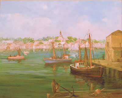 Peter Koster, born in the Netherlands, received his early education and training in fine art and period decoration from an excellent Dutch trade school. After serving various apprenticeships in Holland, he migrated to this country, making Grand Rapids, MI his home. He worked for fine furniture companies paint decorating furniture and trays and soon became well known. His talents were much in demand. In 1934 he moved to Boston with his career, and gradually became interested in Rockport. He eventually opened his own studio in Rockport, MA called ‘Old Harbor Gallery’. It is here he began to paint marine paintings, (which he is also known for). When he was 65 years old, he moved to Florida where he taught art at Port Charlotte University.