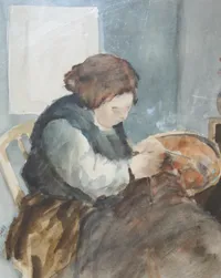 As a tribute to her father, many of her paintings have subtle messages worked in, such as a candle in the window. She also incorporated messages to her family, like three aprons hanging to represent her children growing up, and her relinquishing her role as mother.