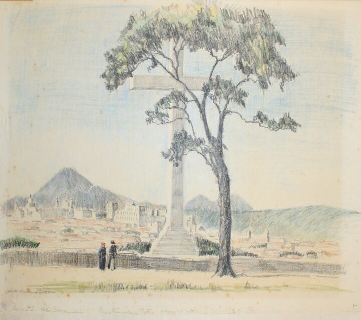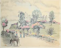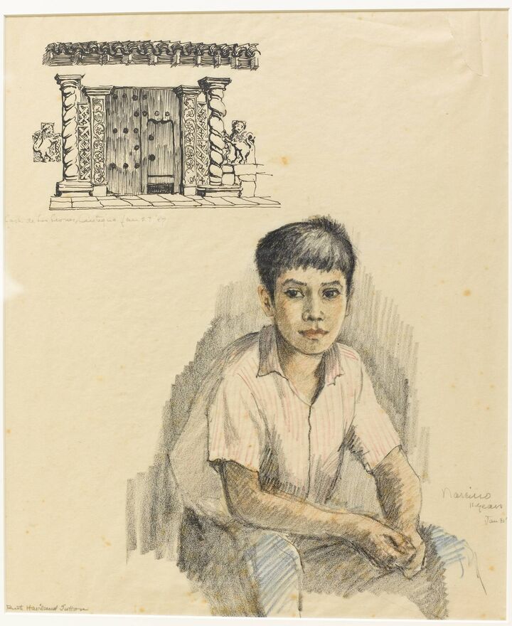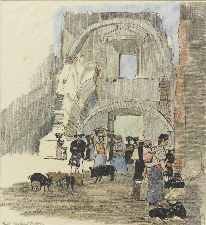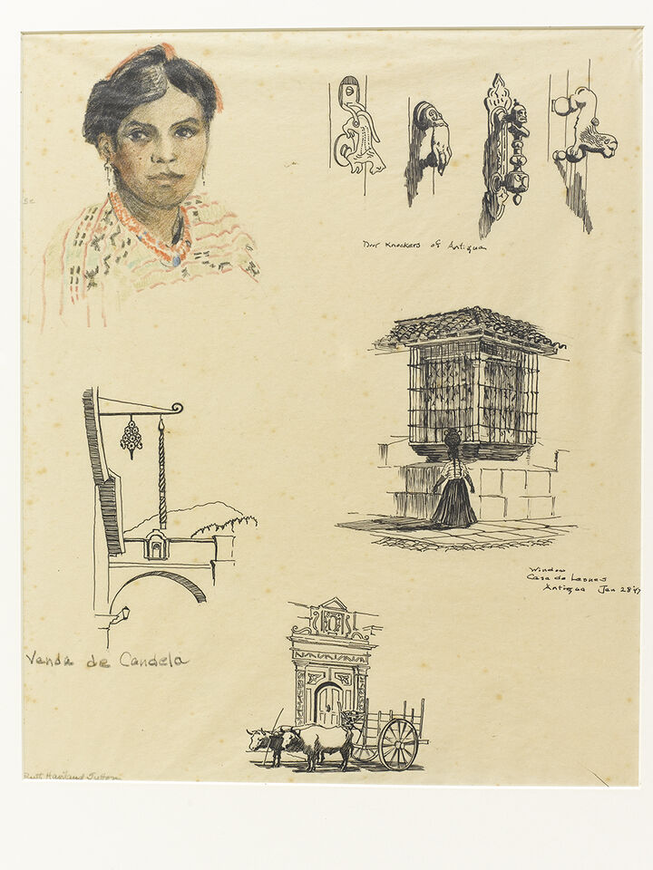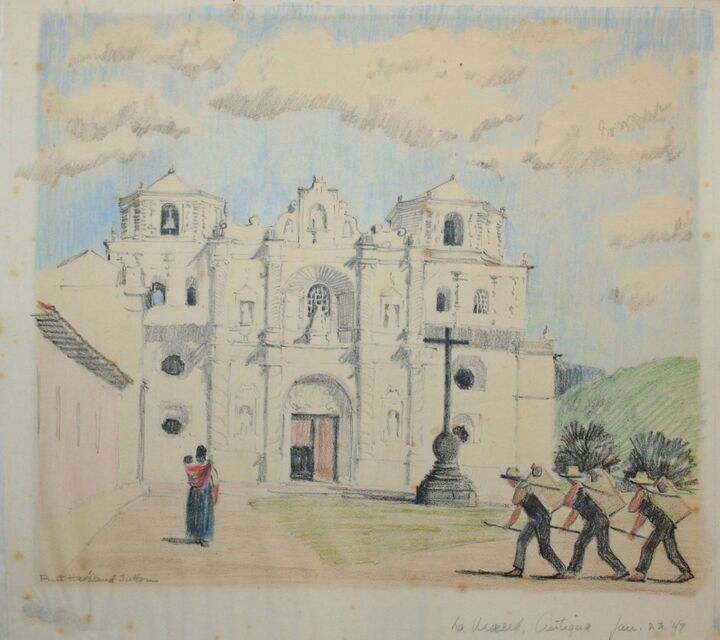 In 1947 Sutton journeyed through Central America and Antigua, Guatemala, and several of her travel sketches reside in the PC. Also a number of Florida sketches from a 1940s trip.