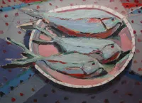 Mulbry grew up in Florida. A past Massachusetts Artist Fellow, Mulbry graduated from Evergreen State College and the Boston Museum School. After solo exhibitions at the AAN in 1984 and 1985, she produced nine more at The Main Street Gallery from 1986 to 1995. “The act of painting is, among other things, about getting to the essence of an idea, an emotion, a memory, a moment.” Her current realistic work in watercolor and oil often focuses on architecture, bird life, or food.