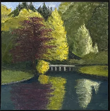 I intend for my art to burst with an energy that invites viewers into a whimsical world of abstraction. With a dynamic interplay of colors—the pinks, reds, yellows, and grounding blues—it evokes a sense of joyful chaos. Thick brushstrokes and layered textures give the canvas a tactile, almost musical rhythm. I intend for the work to cause a reaction - bring a smile. I hope you like it.